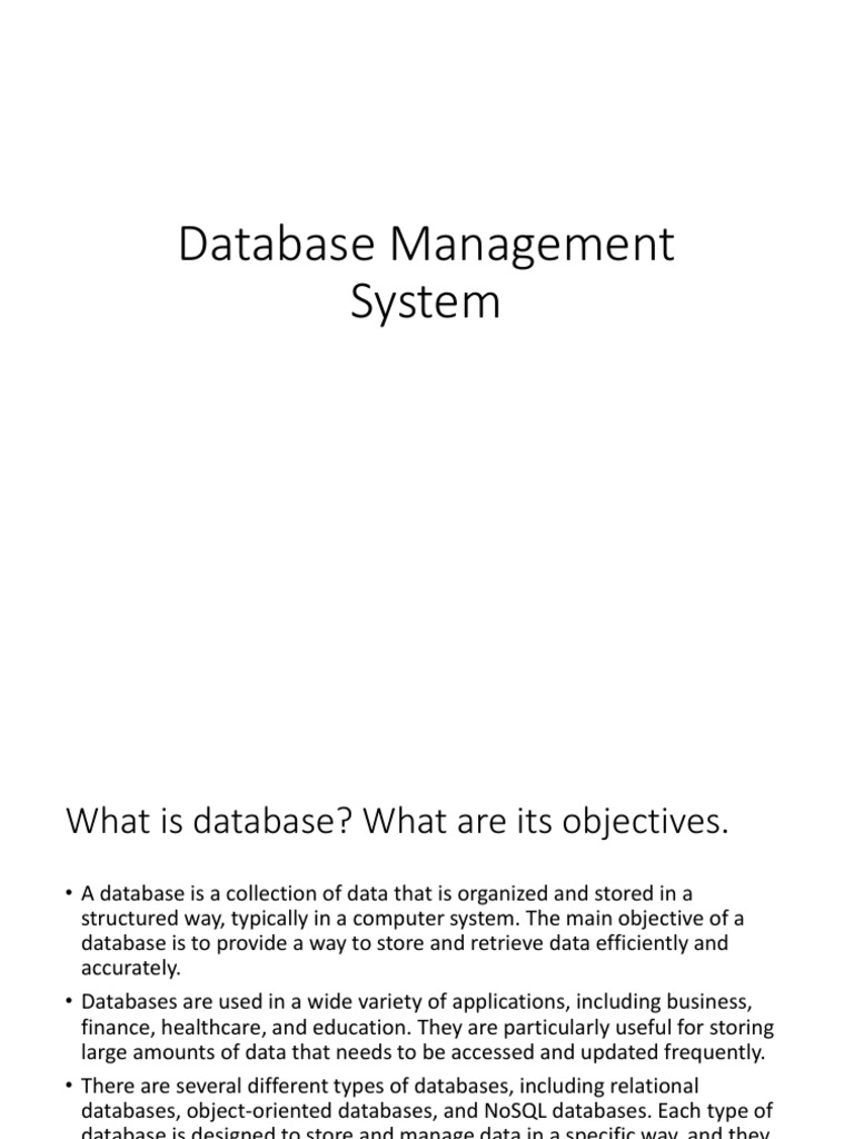 Overall, the main objective of a database is to provide a reliable and efficient way to