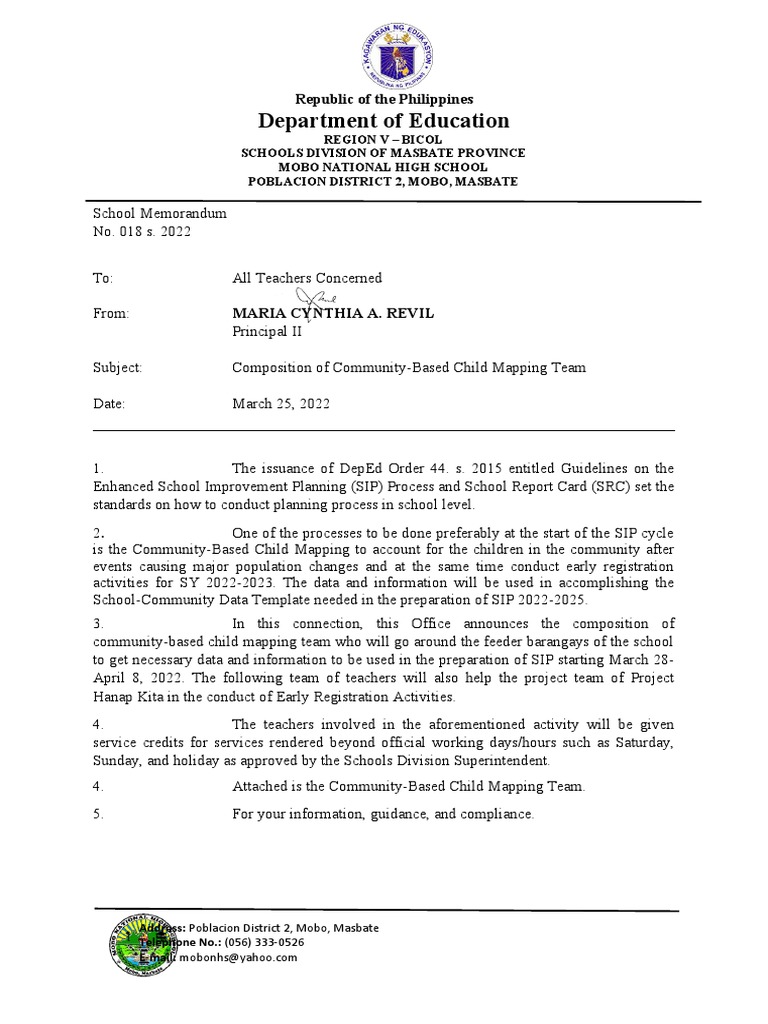 further that the teachers involved be assisted and accompanied by your Barangay Health