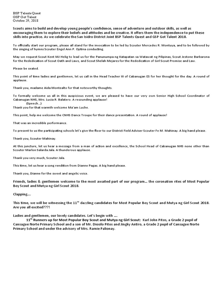 skills into practice. As we celebrate the San Isidro District Joint BSP Talents Quest and GSP Got Talent 2018.