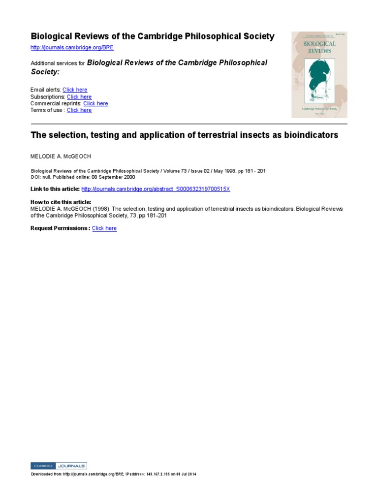 Biological Reviews of the Cambridge Philosophical Society / Volume 73 / Issue 02 / May 1998, pp 181 - 201