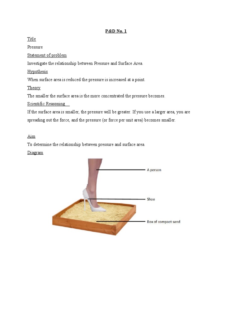 Weight (N) Surface area (cm2) Pressure (Pa) Depth (cm)