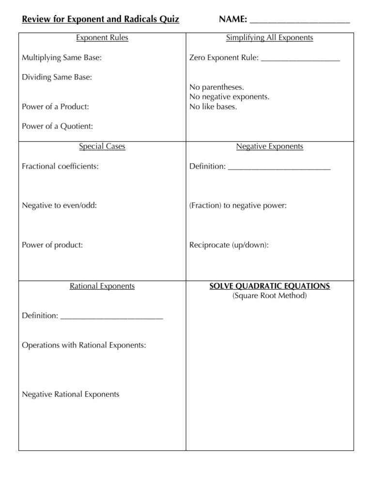 Review for Exponent and Radicals Quiz NAME: ______________________