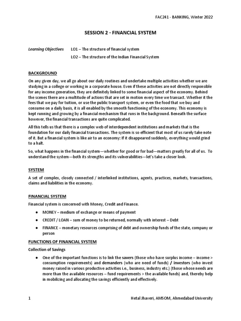 COMPONENTS OF THE FINANCIAL SYSTEM