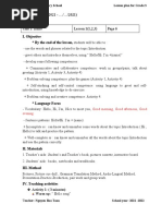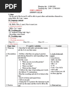 1. Knowledge: By the end of the lesson Ps will be able to: greet and self-