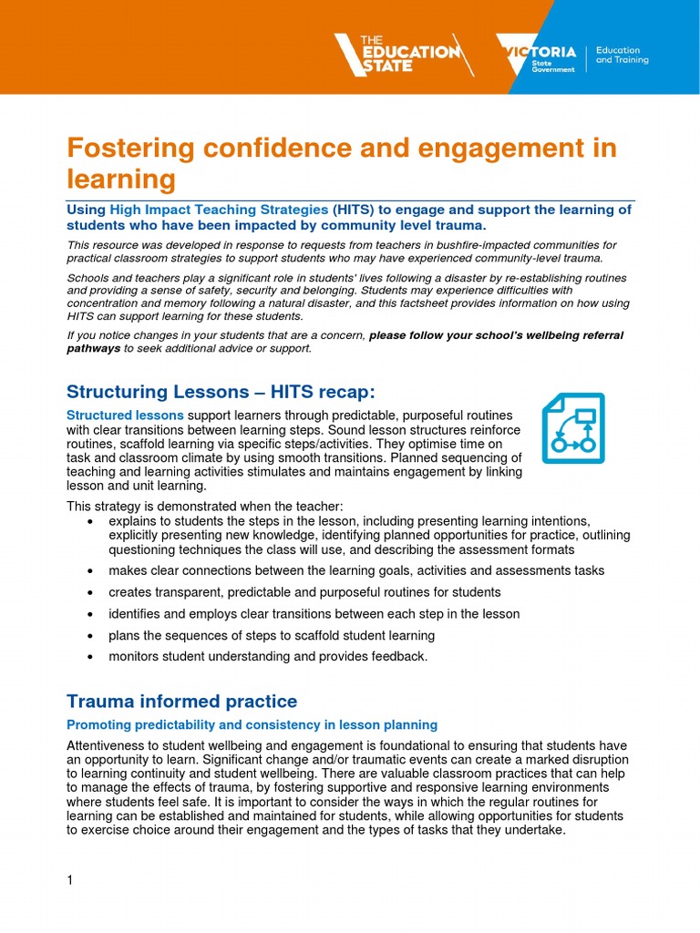 Using High Impact Teaching Strategies (HITS) to engage and support the learning of