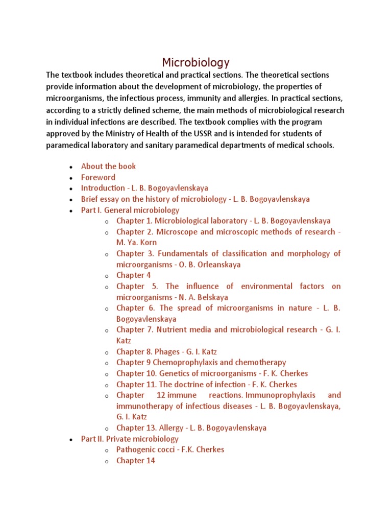 Brief essay on the history of microbiology - L. B. Bogoyavlenskaya