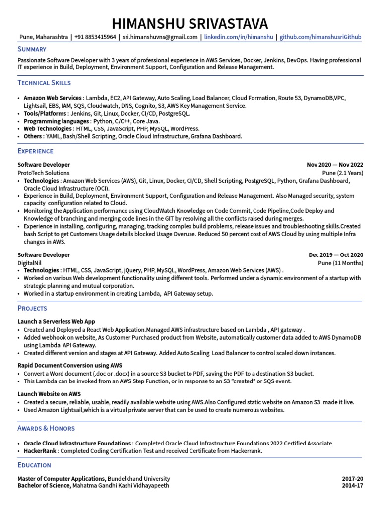 Passionate Software Developer with 3 years of professional experience in AWS Services, Docker, Jenkins, DevOps. Having professional