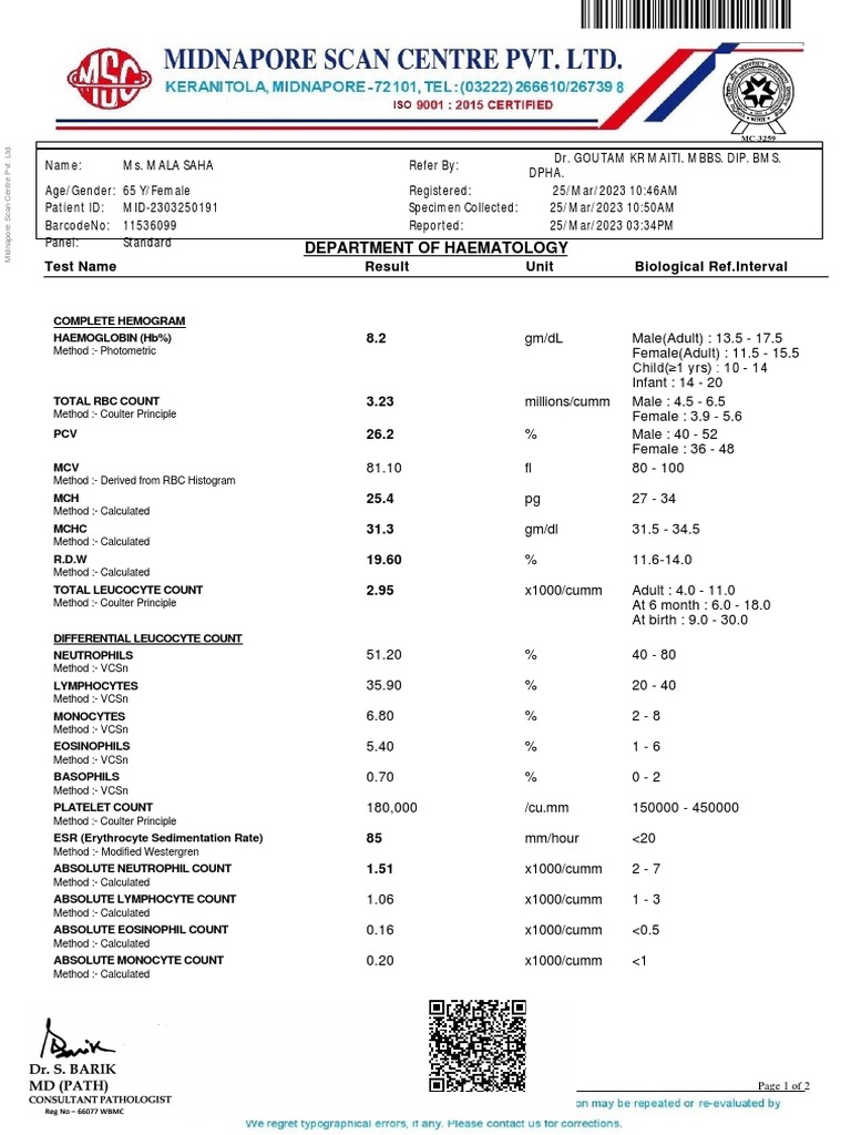 BarcodeNo: 11536099 Reported: 25/Mar/2023 03:34PM