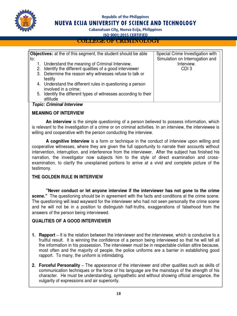 1. Understand the meaning of Criminal Interview, Interview.