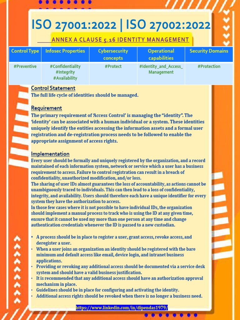 • ANNEX A CLAUSE 5.16 IDENTITY MANAGEMENT