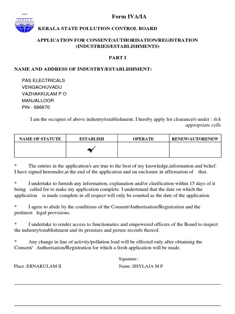APPLICATION FOR CONSENT/AUTHORISATION/REGISTRATION