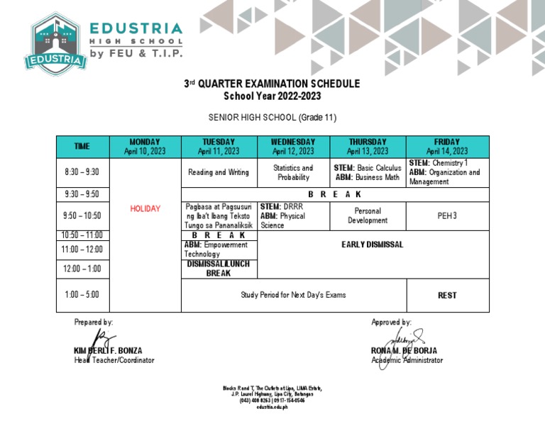 3rd QUARTER EXAMINATION SCHEDULE