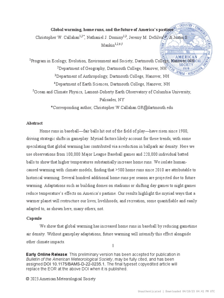 Global Warming, Home Runs, and The Future of America's Pastime