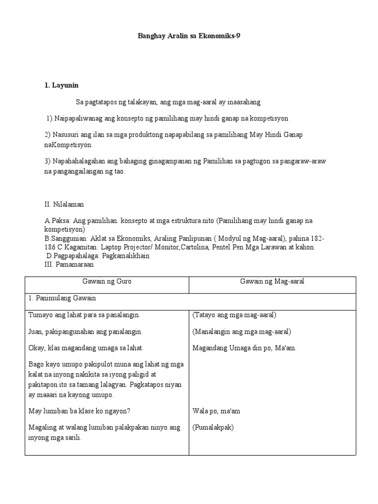A.Paksa: Ang pamilihan. konsepto at mga estruktura nito (Pamilihang may hindi ganap na