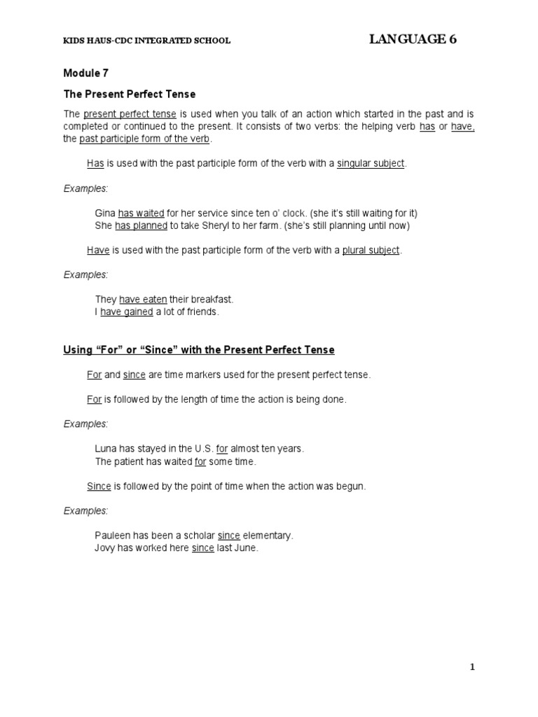 completed or continued to the present. It consists of two verbs: the helping verb has or have,