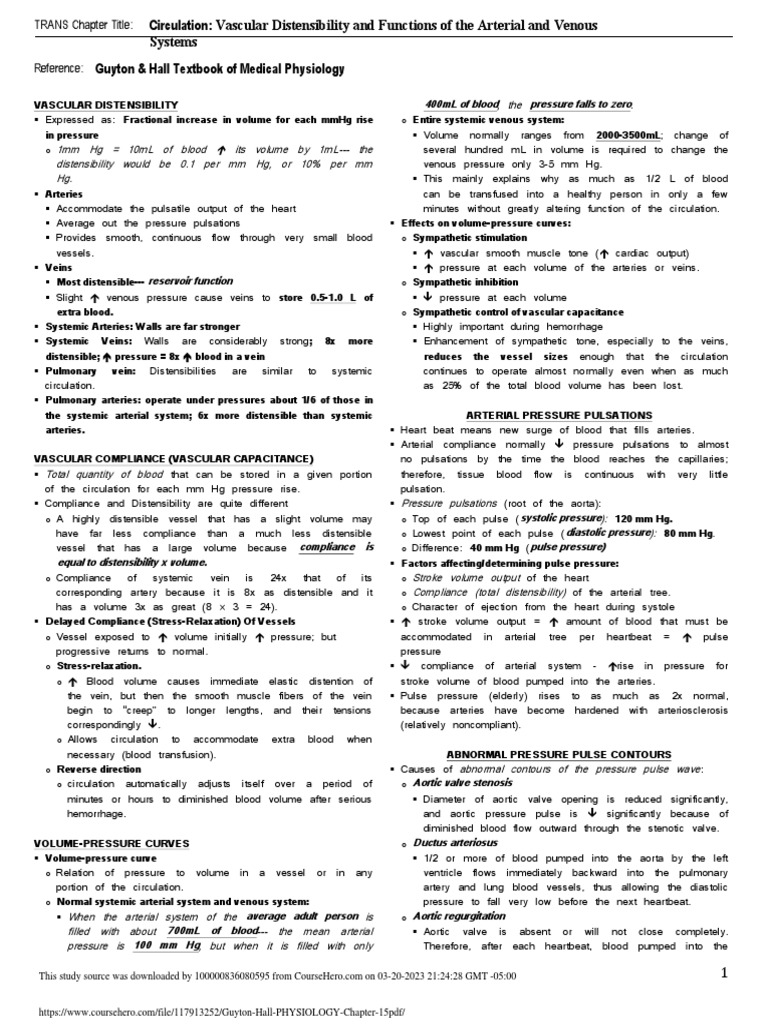 TRANS Chapter Title: Circulation: Vascular Distensibility and Functions of the Arterial and Venous