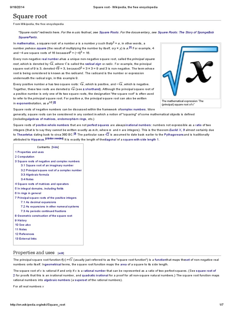 http://en.wikipedia.org/wiki/Square_root 7/7