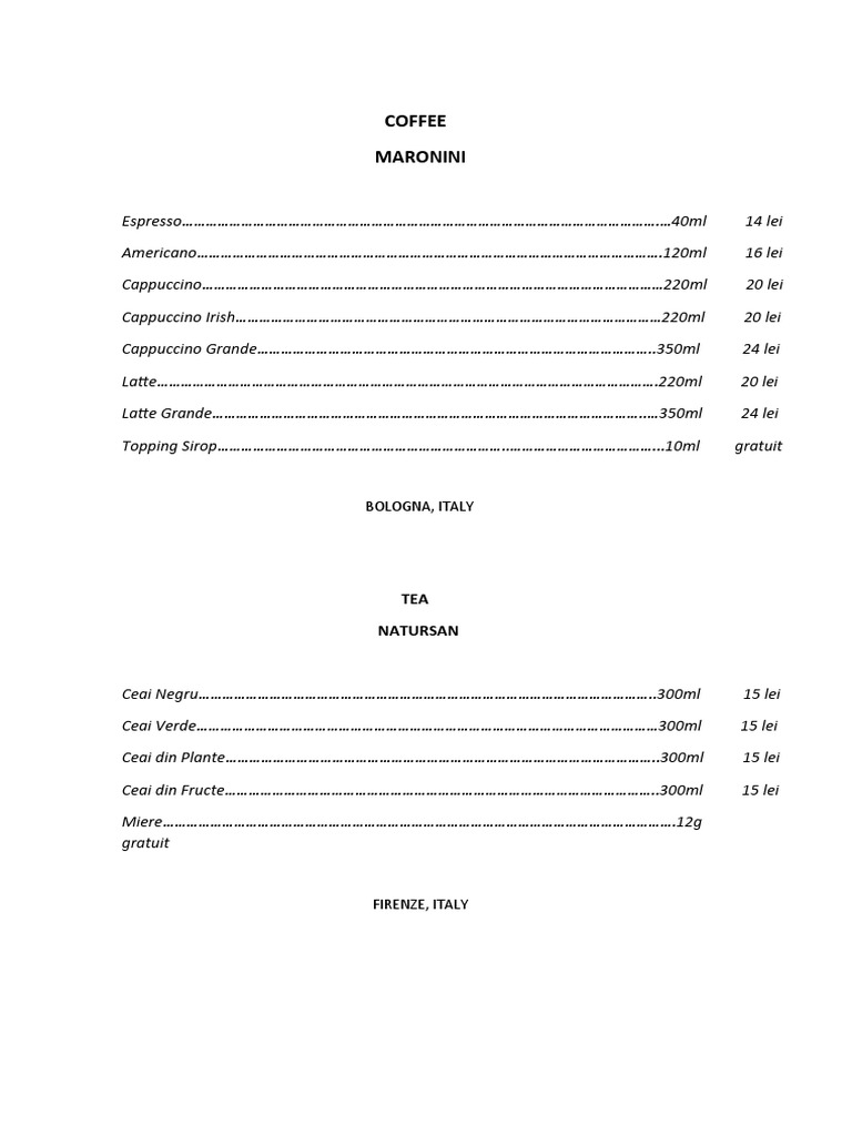 Espresso………………………………………………………………………………………………………….…40ml 14 lei
