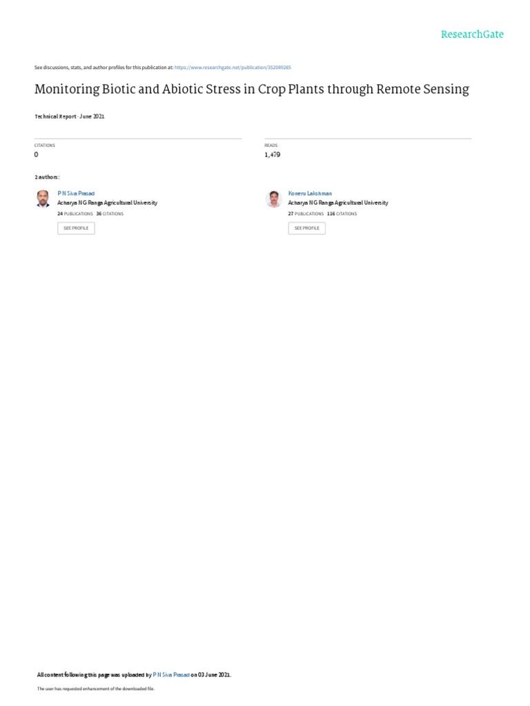 Abiotic stress, biotic stress, remote sensing,