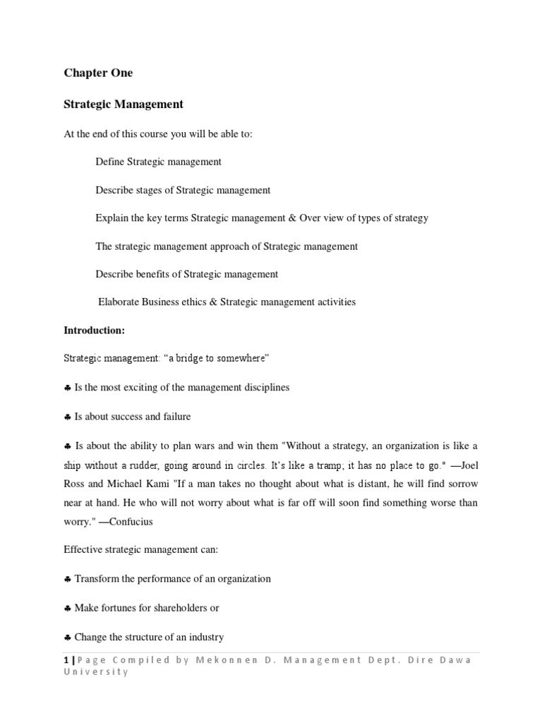 in lieu of other, ―less desirable‖ courses of action. The term strategic management is used at