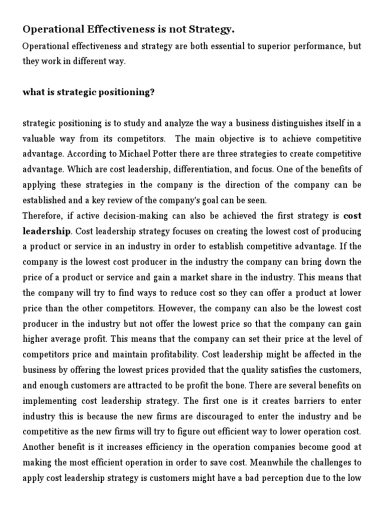 other competitors. Besides that, cost leadership is also a difficult strategy to achieve at