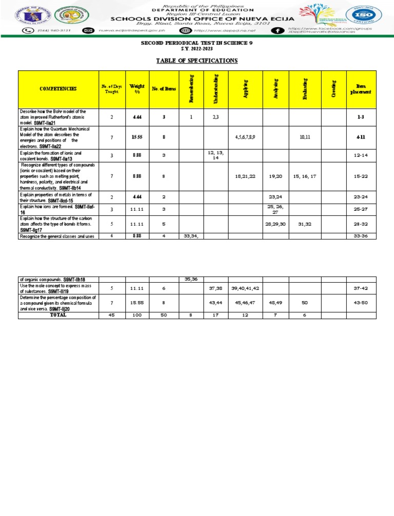 SECOND PERIODICAL TEST IN SCIENCE 9