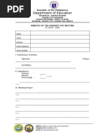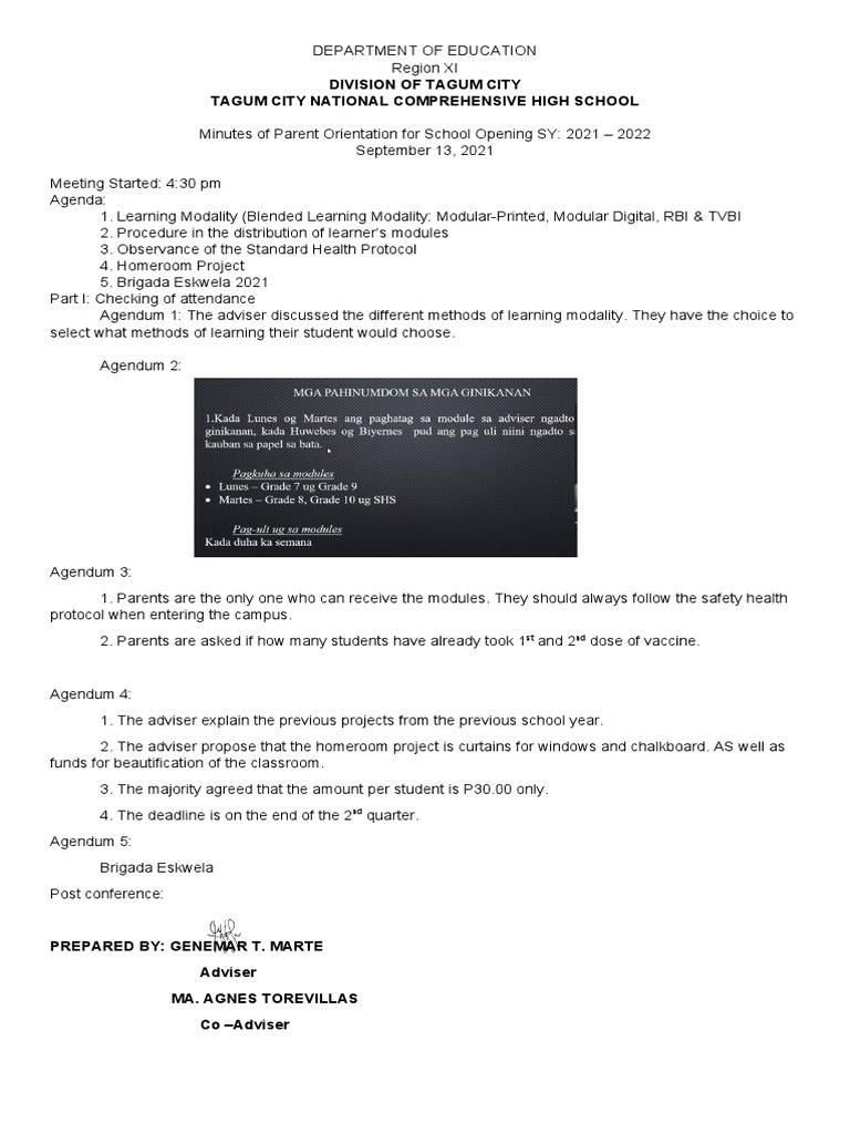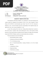 Minutes of Parent Orientation for School Opening SY: 2021 – 2022