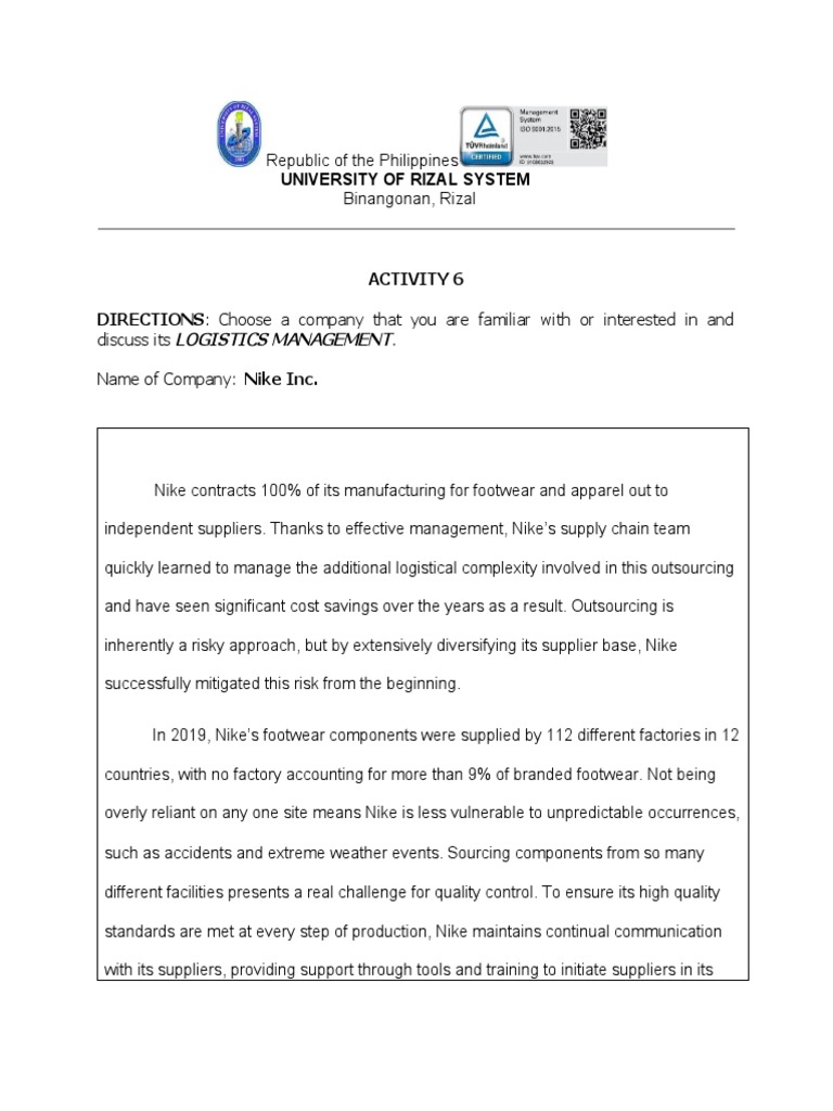independent suppliers. Thanks to effective management, Nike’s supply chain team