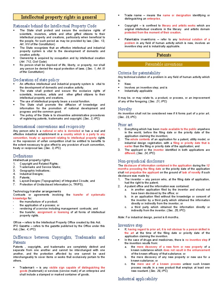 of registering patents, trademarks and copyright. (Sec. 2, IPC)