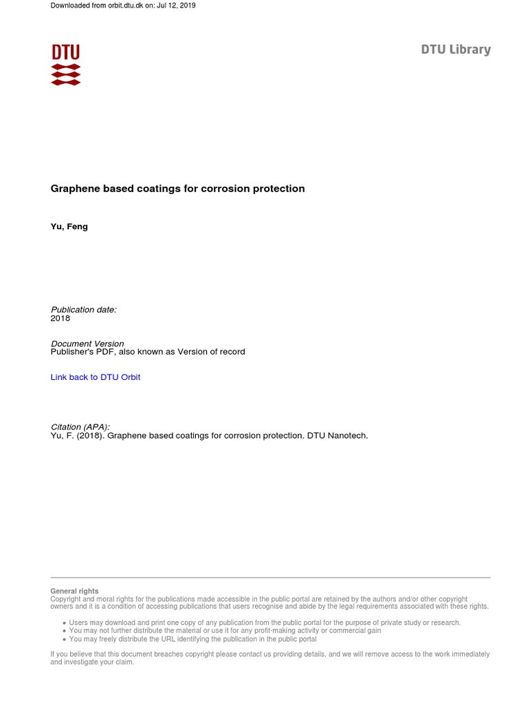 Yu, F. (2018). Graphene based coatings for corrosion protection. DTU Nanotech.