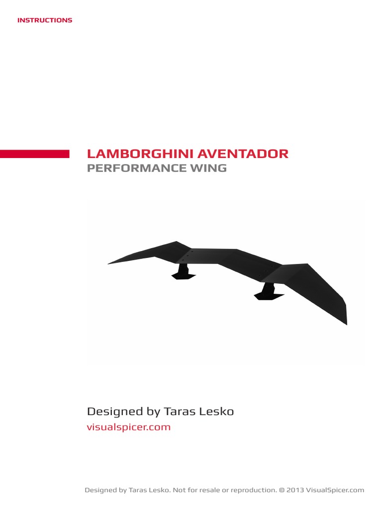 INSTRUCTIONS LAMBORGHINI AVENTADOR . PERFORMANCE WING
