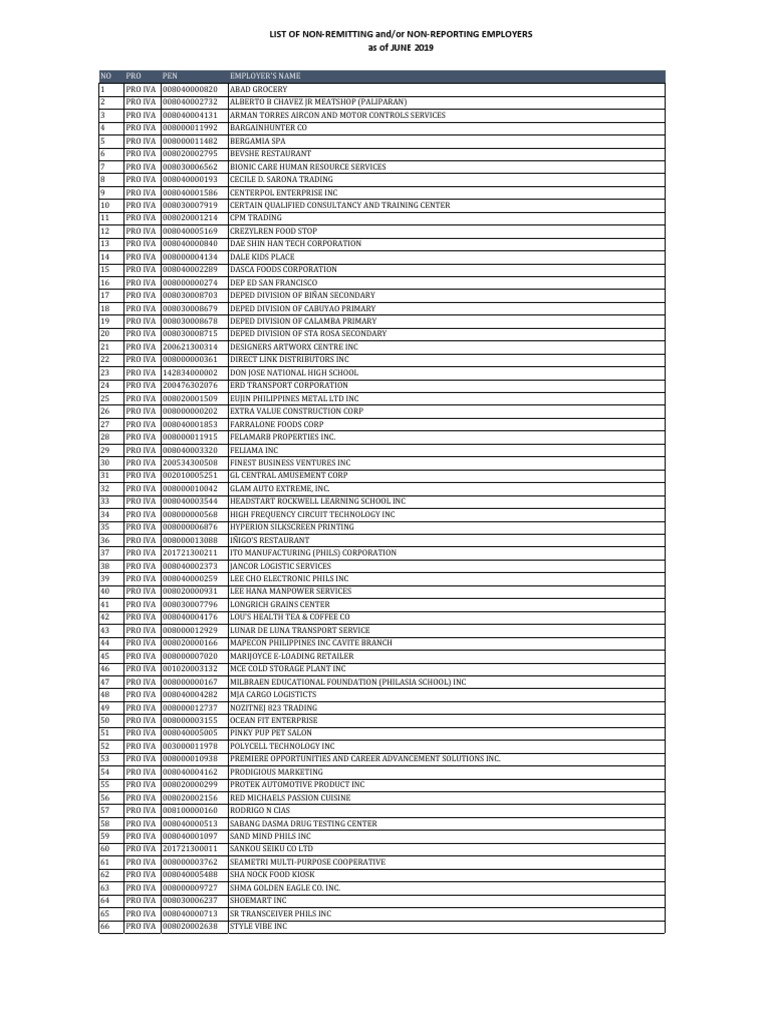 LIST OF NON‐REMITTING and/or NON‐REPORTING EMPLOYERS