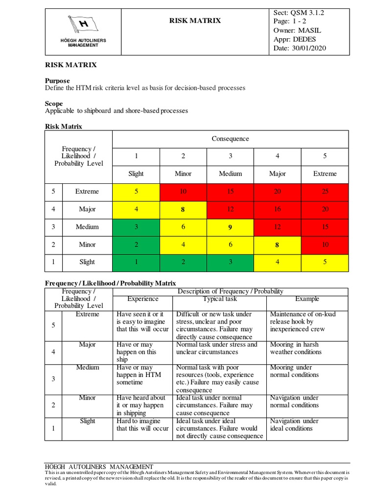 T his is an uncontrolled paper copy of the Höegh Autoliners Management Safety and Environmental Management System. Whenever this document is