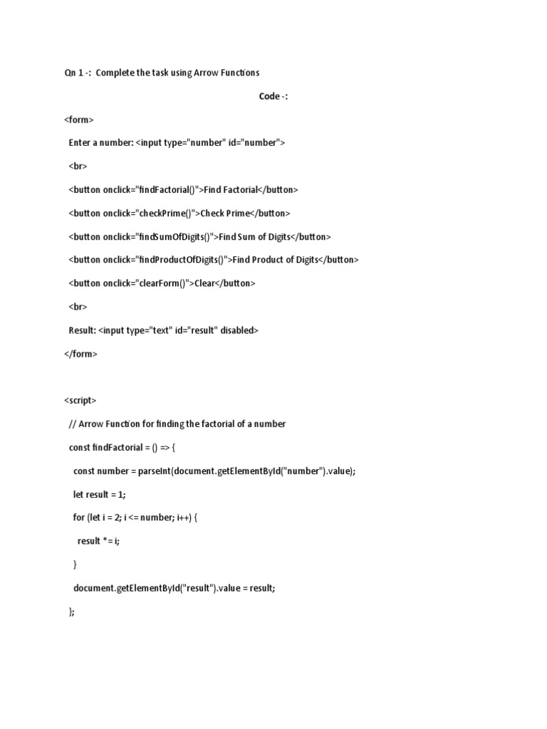 Qn 1 -: Complete the task using Arrow Functions
