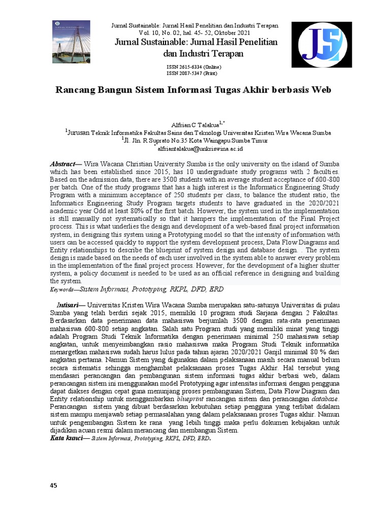 Alfrian Talakua, Rancang Bangun Sistem Informasi Tugas Akhir Berbasis Web