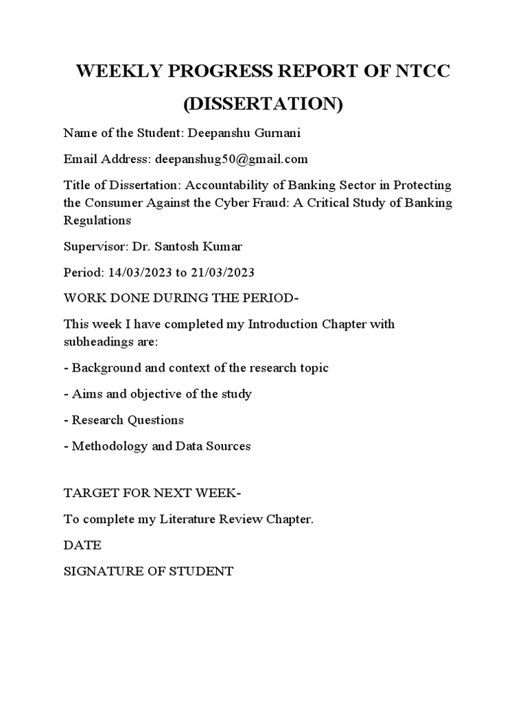 Title of Dissertation: Accountability of Banking Sector in Protecting
