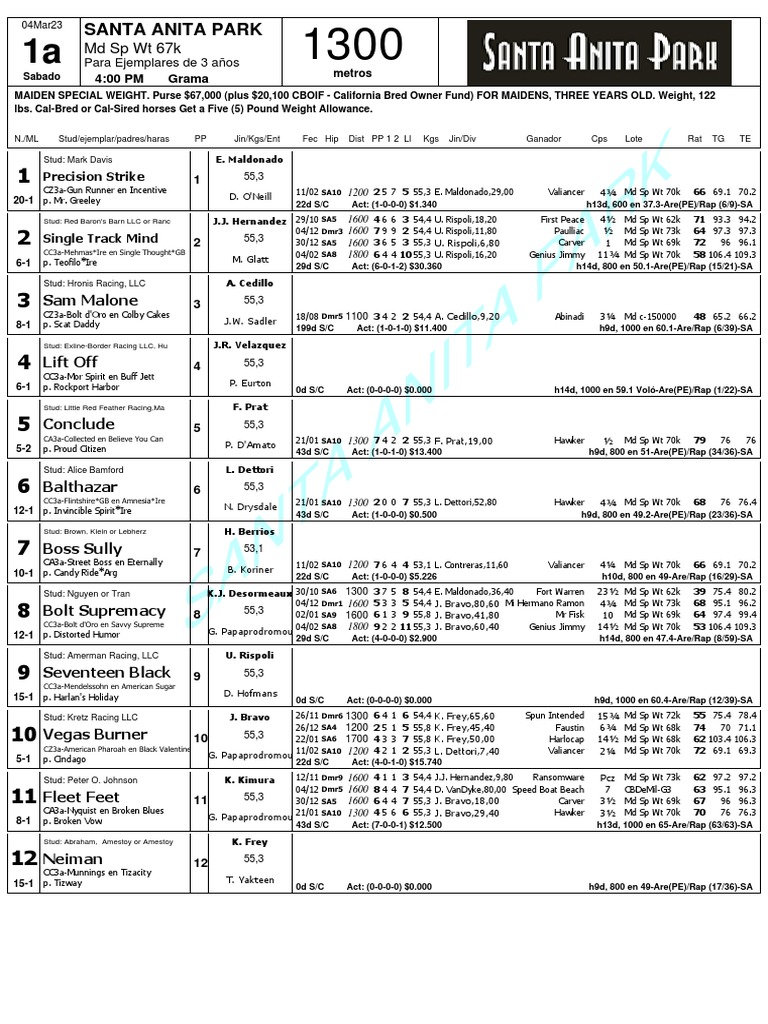 Santa Anita Park Race Entries March 4