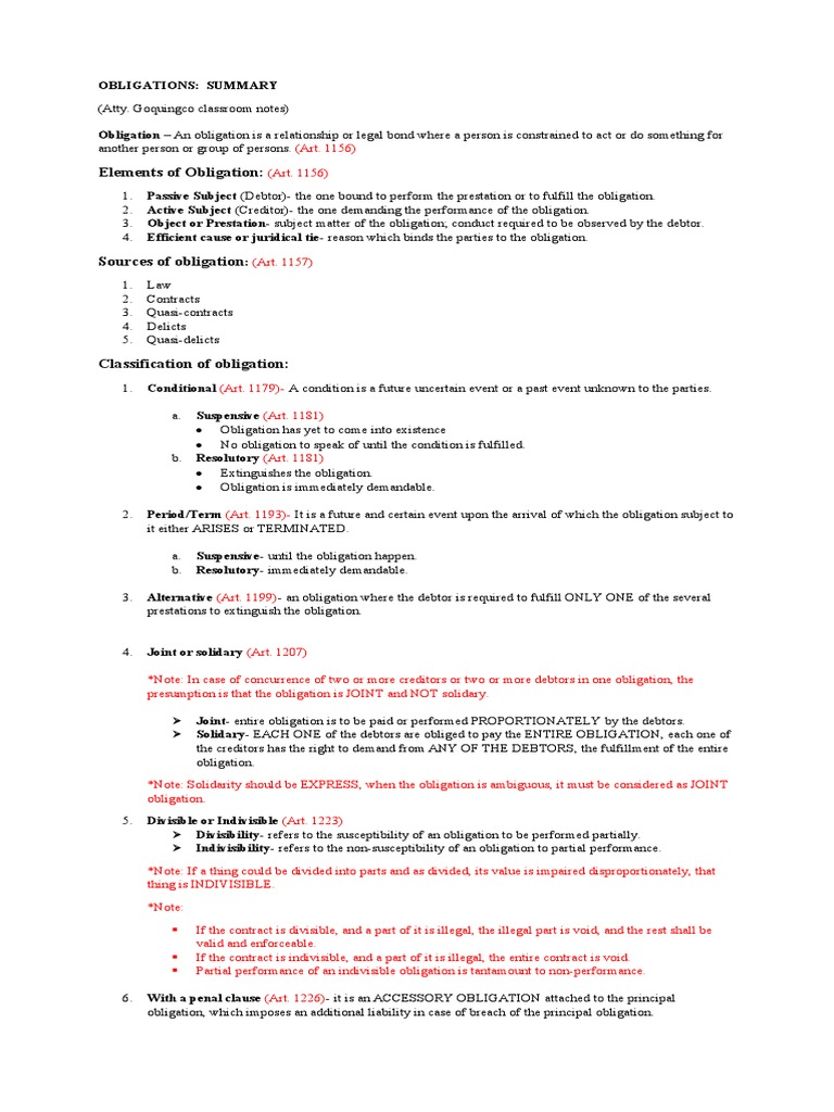 *Note: In case of concurrence of two or more creditors or two or more debtors in one obligation, the