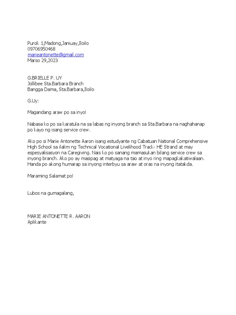 service crew sa inyong brach. Ako po ay masipag at maaasahan. Handa po akong