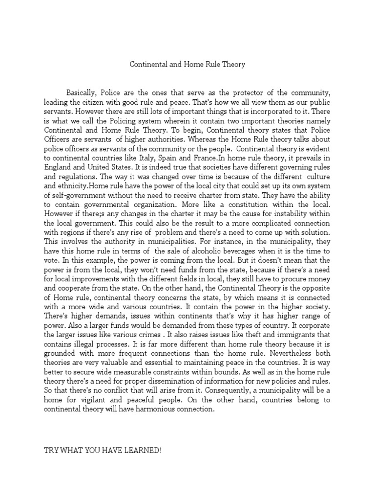 Continental and Home Rule Theory. To begin, Continental theory states that Police