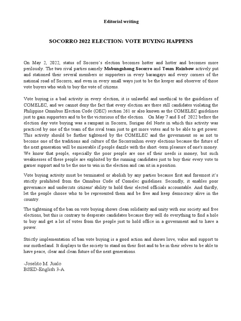 SOCORRO 2022 ELECTION: VOTE BUYING HAPPENS