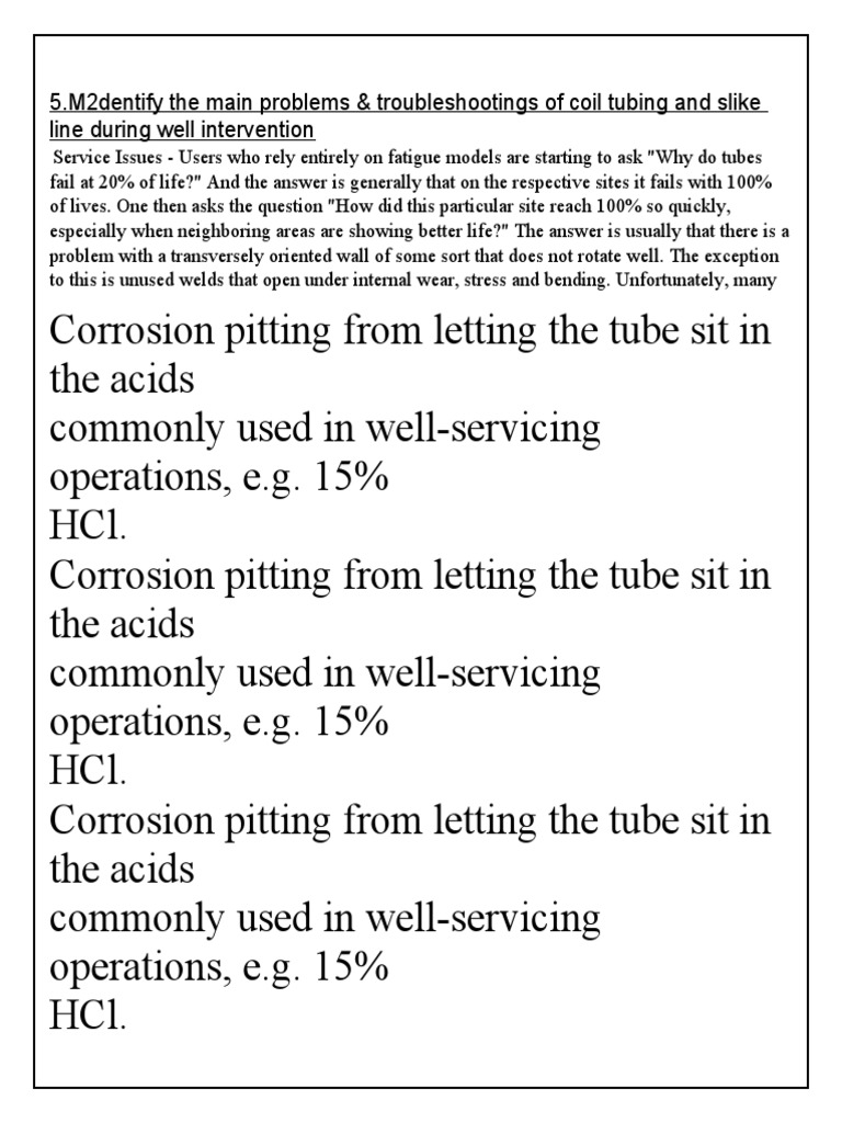 M2dentify the main problems & troubleshootings of coil tubing and slike