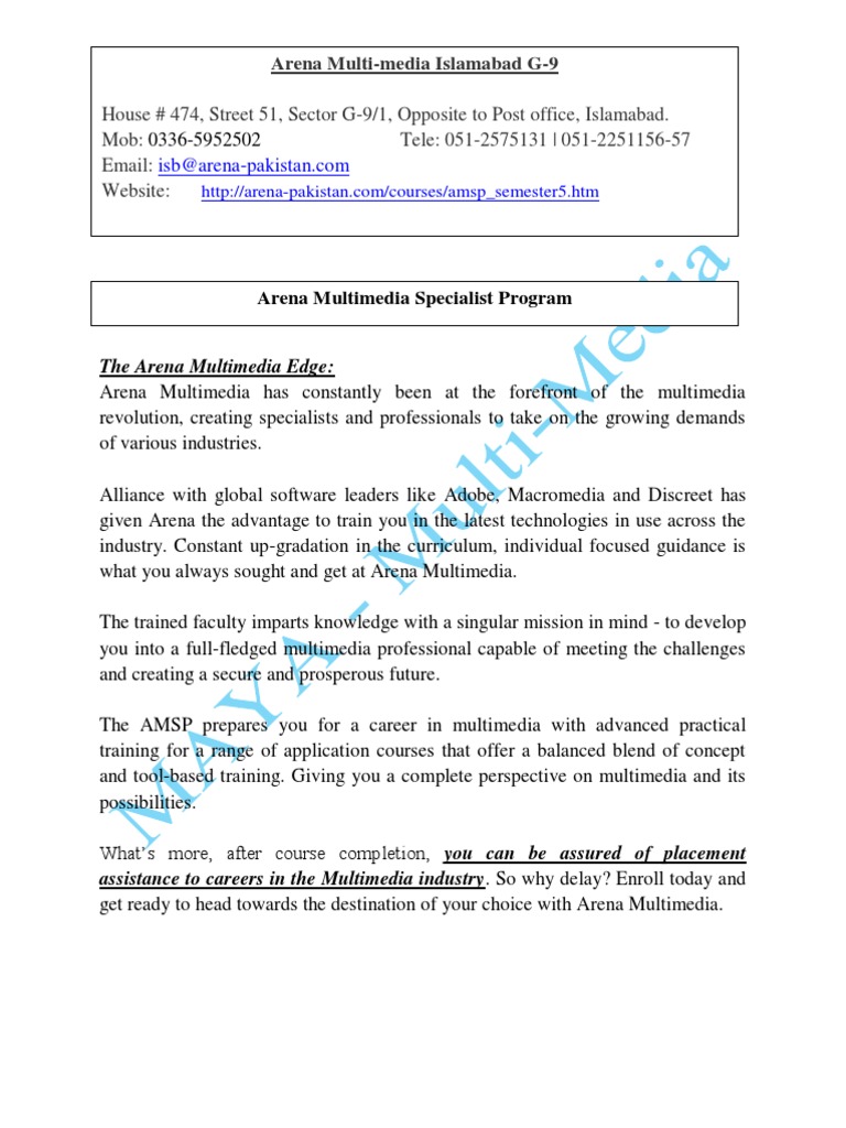 Mob: 0336-5952502 Tele: 051-2575131 | 051-2251156-57 Email: isb@arena-pakistan.com Website: http://arena-pakistan.com/courses/amsp_semester5.htm