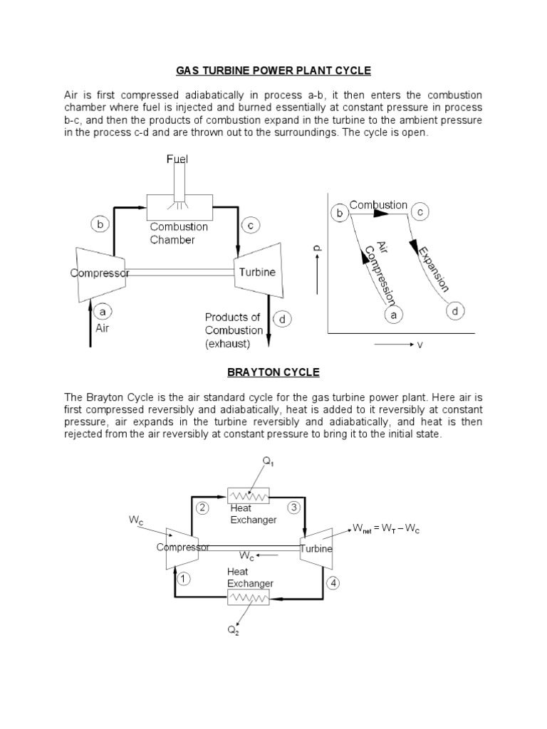 GAS TURBINE POWER PLANT CYCLE Air is first compressed adiabatically in process a-b, it then enters the combustion