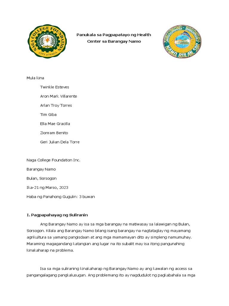 Makapagpagawa Ng health center sa barangay namo. Tunguhing maagapan agad ang