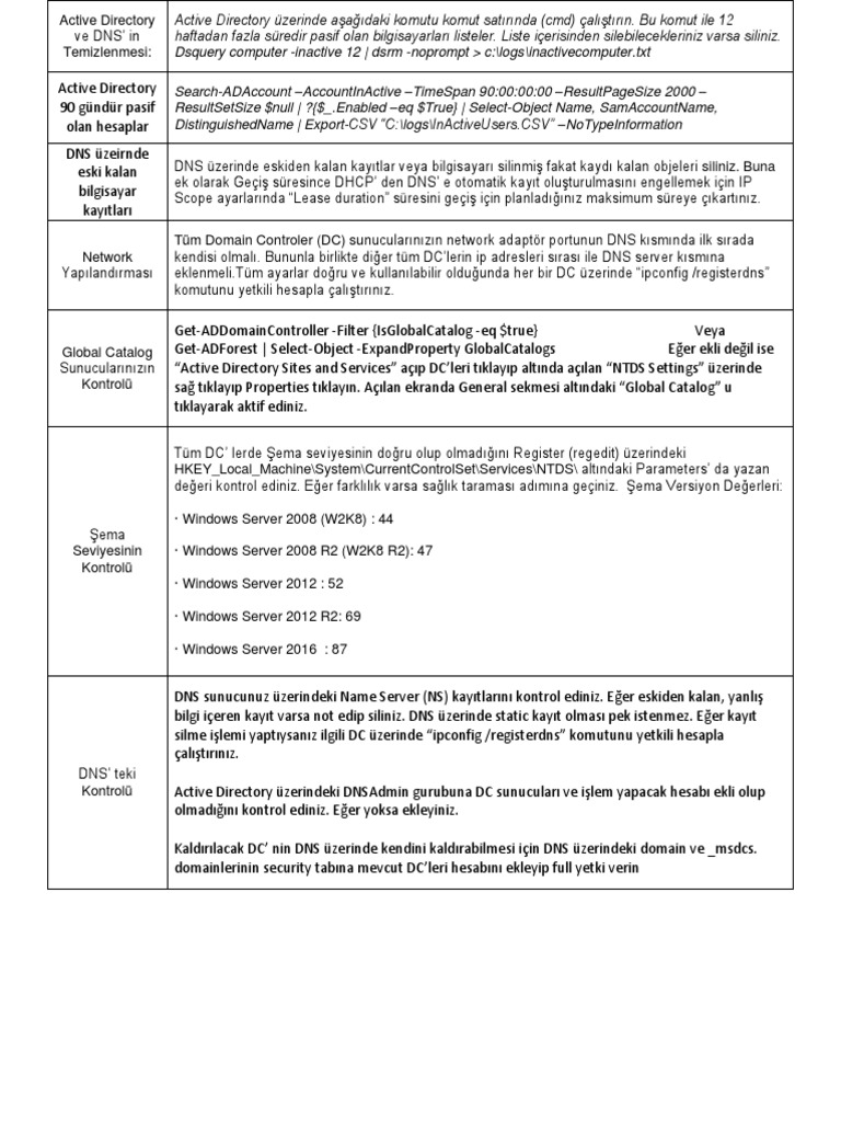 Temizlenmesi: Dsquery computer -inactive 12 | dsrm -noprompt > c:\logs\inactivecomputer.txt