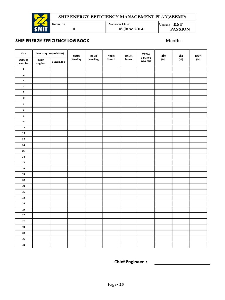SHIP ENERGY EFFICIENCY LOG BOOK Month: