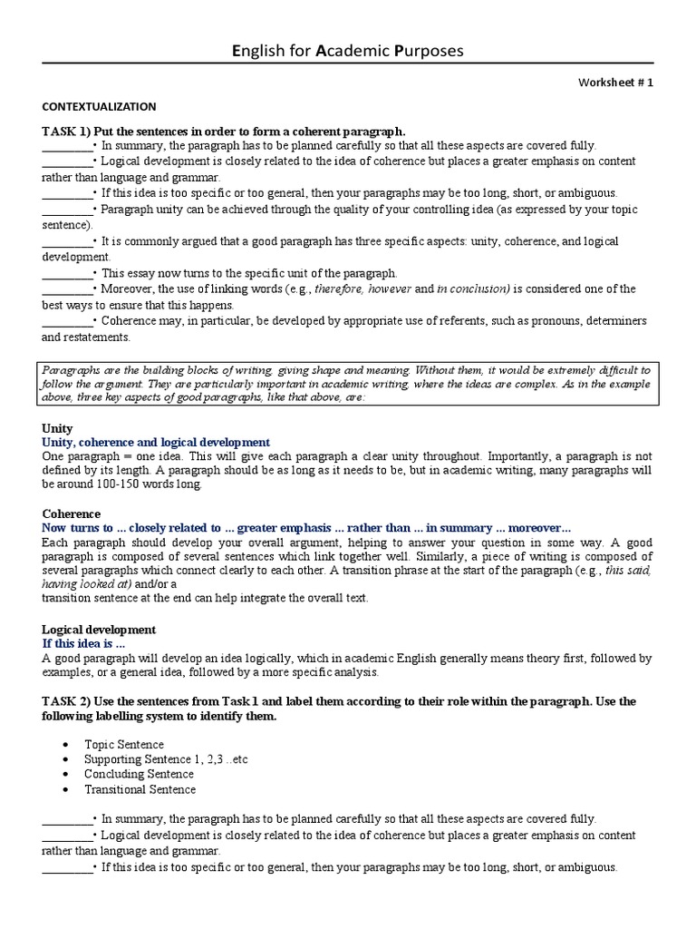 TASK 1) Put the sentences in order to form a coherent paragraph.