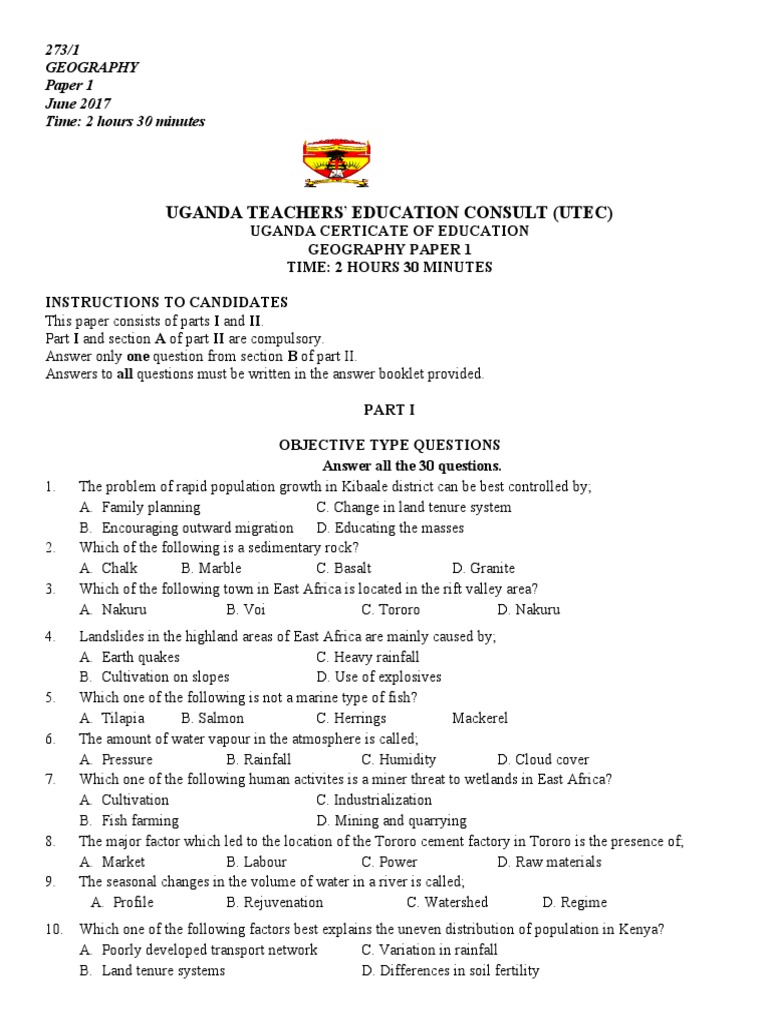 GEOGRAPHY PAPER 1