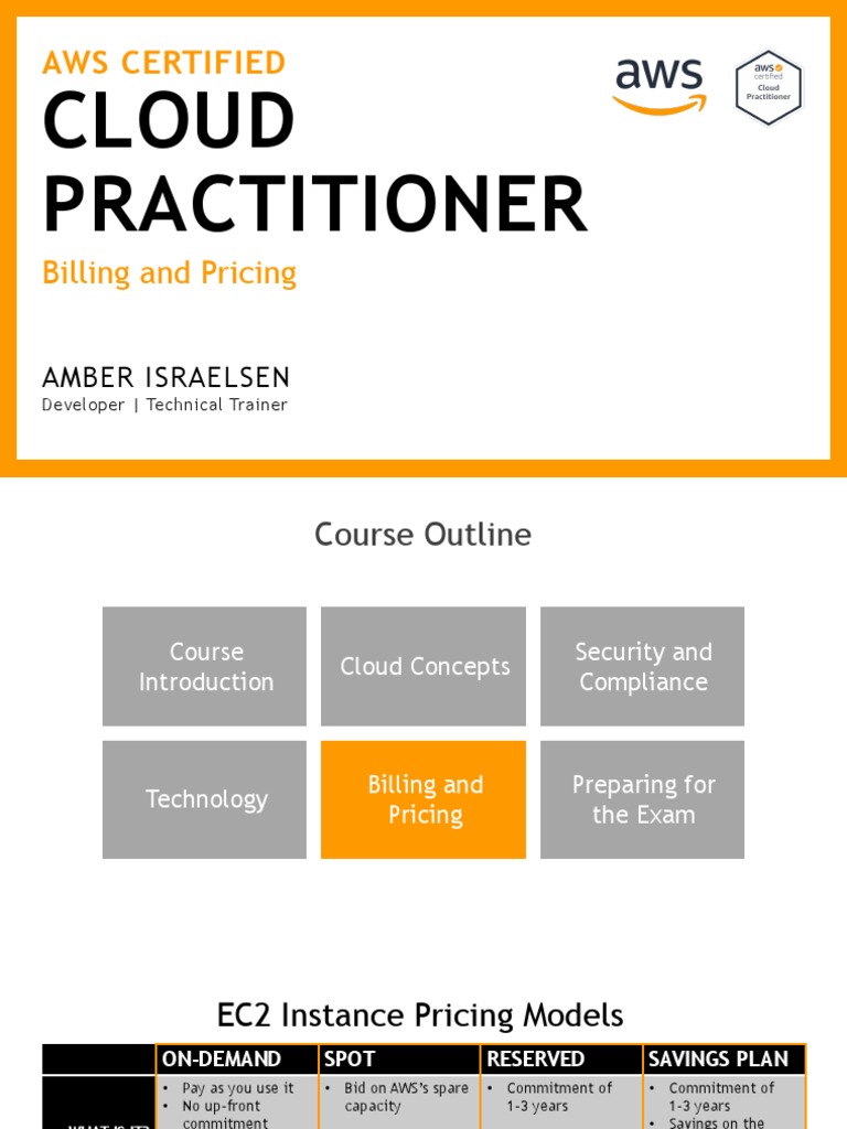 - Savings Plans combine on-demand and reserved; you receive savings on the commitment of 1-3